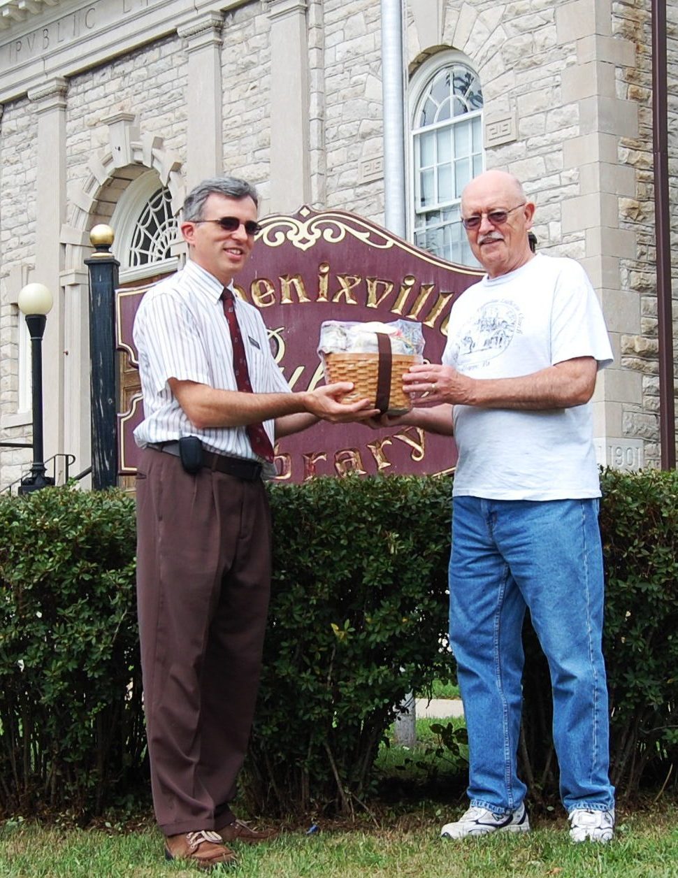 The Adult Summer Reading Program, “Novel Destinations”, concluded this week with the awarding of the grand prize gift basket — a delectable selection of snack items from around the world — to Richard Clapper (below right, with Adult Services Director, Mark Pinto). He was among 20 participants in the Program who read at least 15 books that were set in or about a foreign country. The Library would like to thank all 118 customers, who ranged in age from 18 to 88, who participated in the Program.